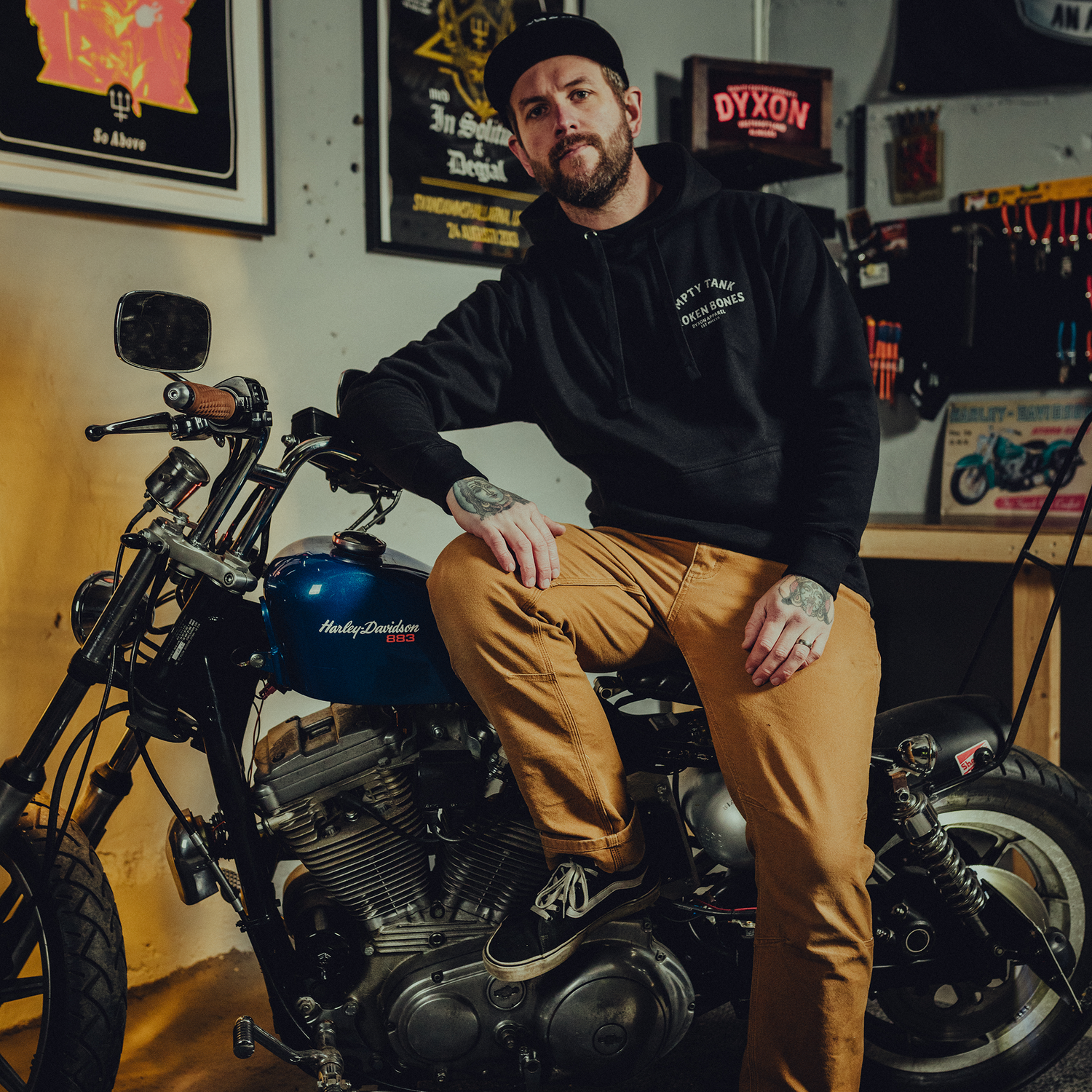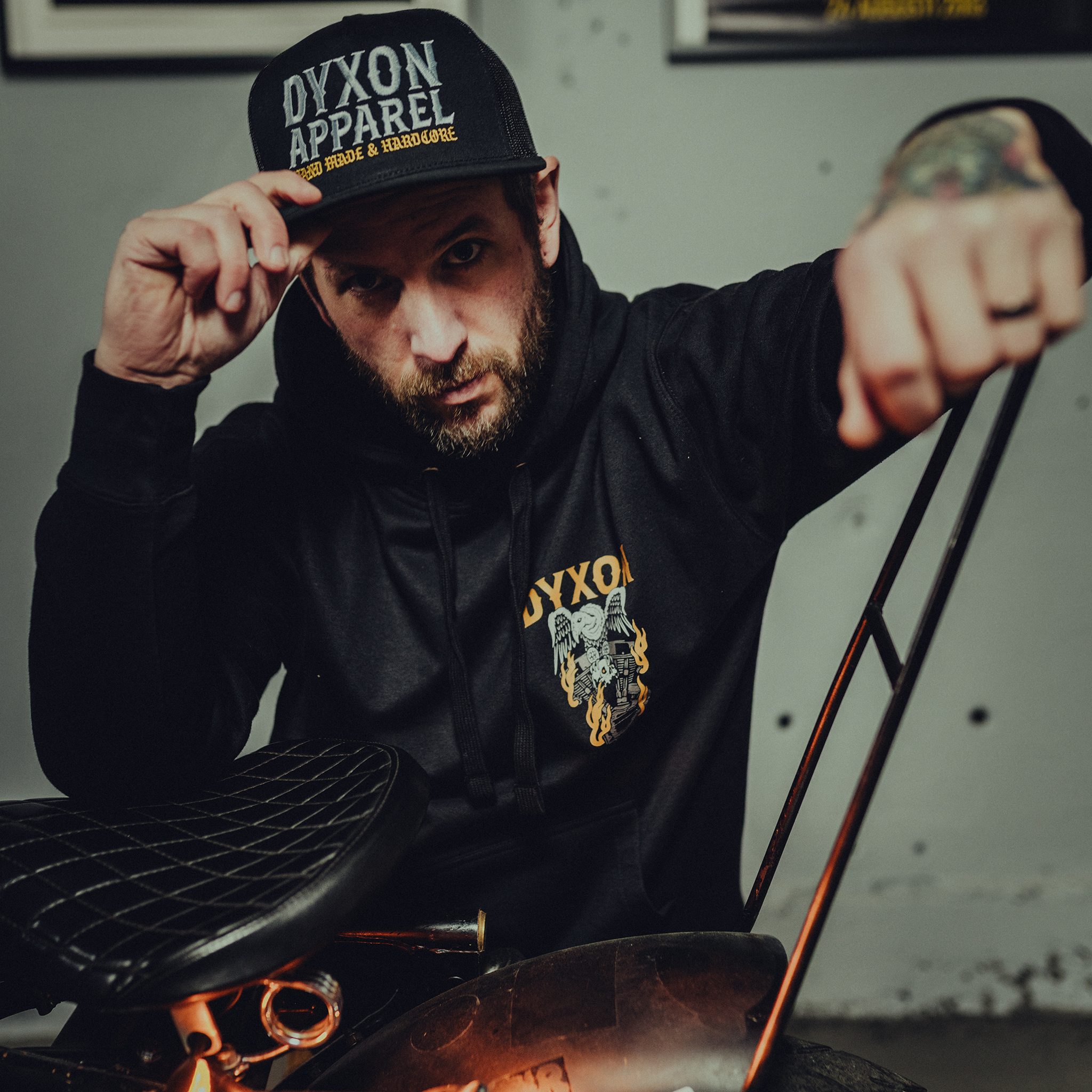 Dyxon Apparel was birthed in Alingsås, 2022. Molded by punk, motorcycles, skateboards — with a relentless passion for authenticity. This brand is for those who live honestly, work hard, and wear their unique story.